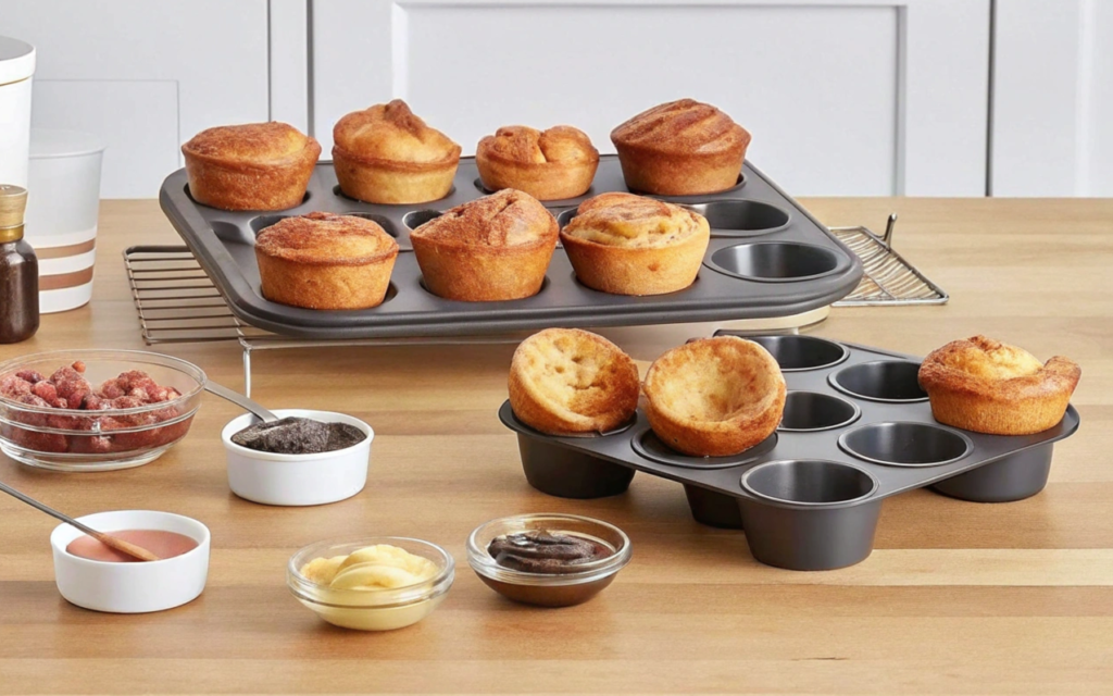 A popover pan is specially designed to create tall, airy popovers. The deep, narrow cups encourage steam to rise upward, giving the popovers their signature puffed shape. The nonstick surface and dark material also help distribute heat evenly, ensuring that each popover cooks to perfection.