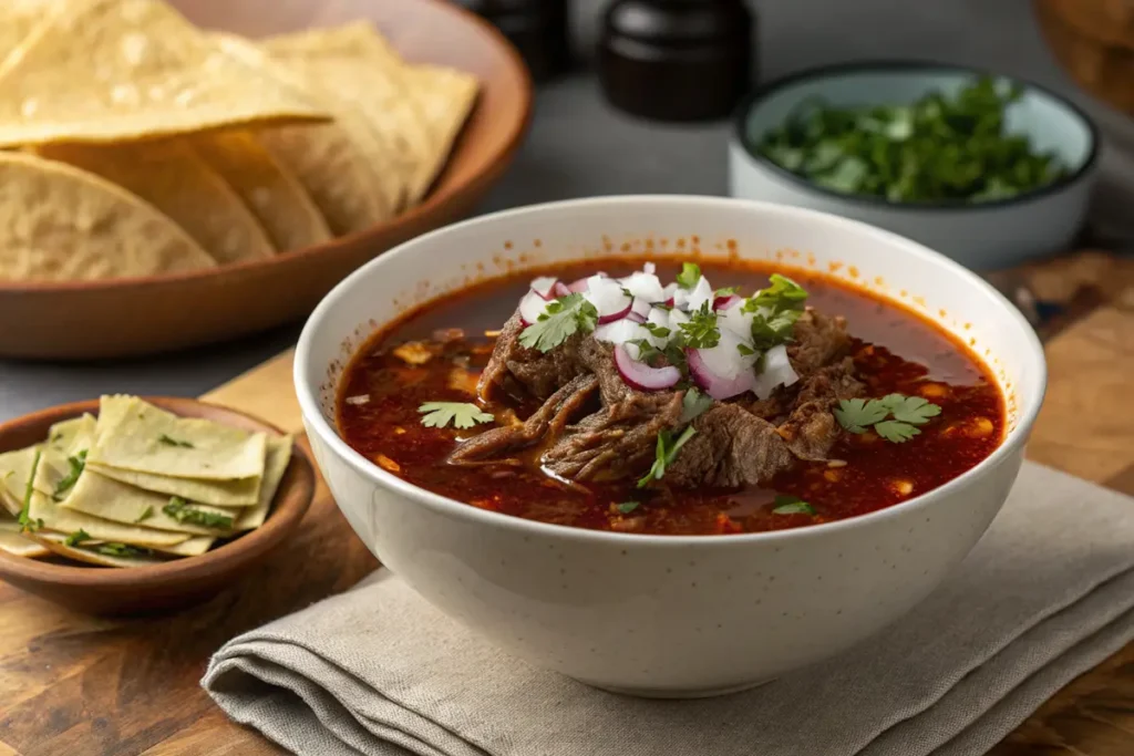 Garnish with chopped cilantro, diced onions, and lime wedges. Serve with a side of consommé for dipping.