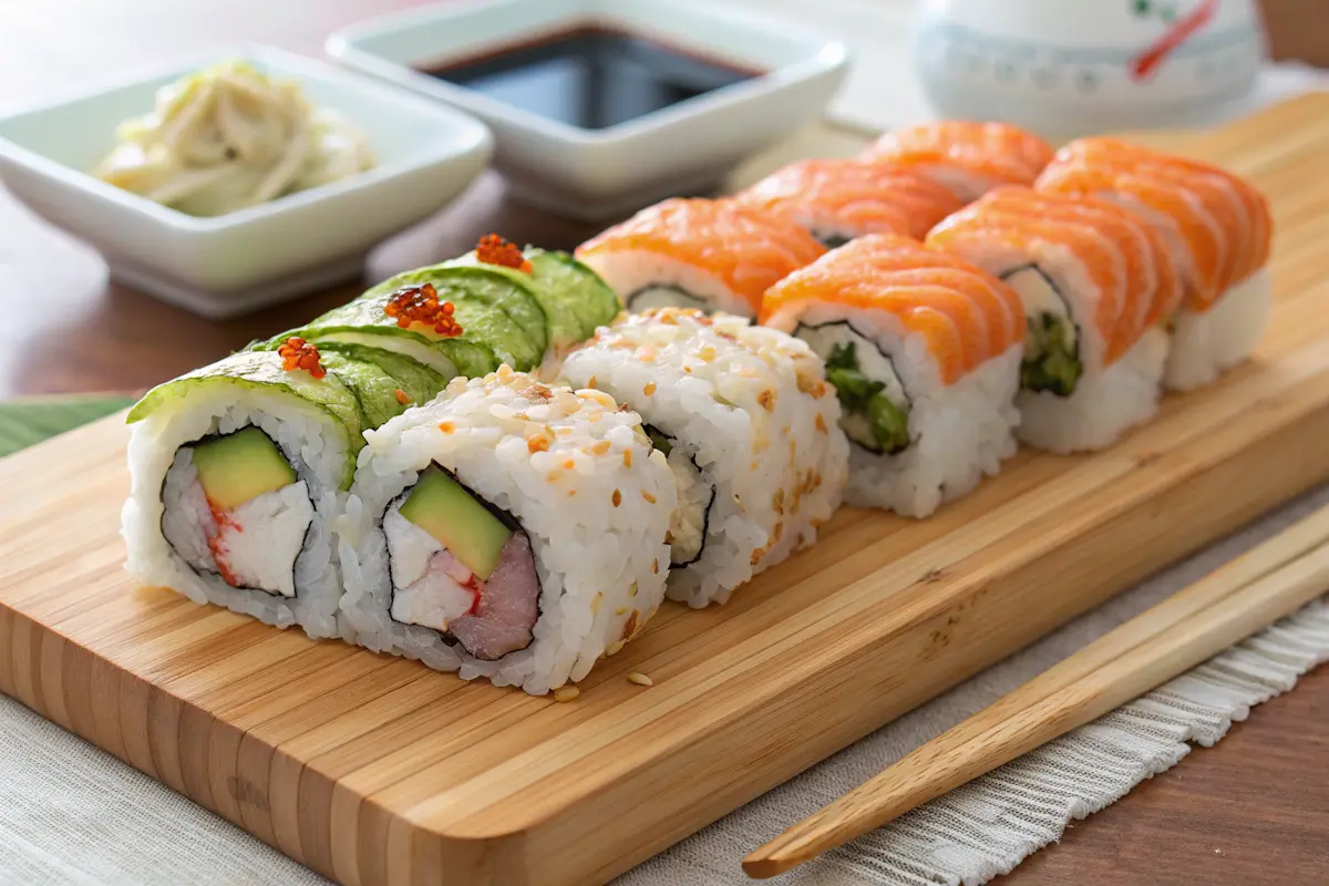• Ingredients like avocado and cucumber, which are not traditionally found in Japanese sushi.