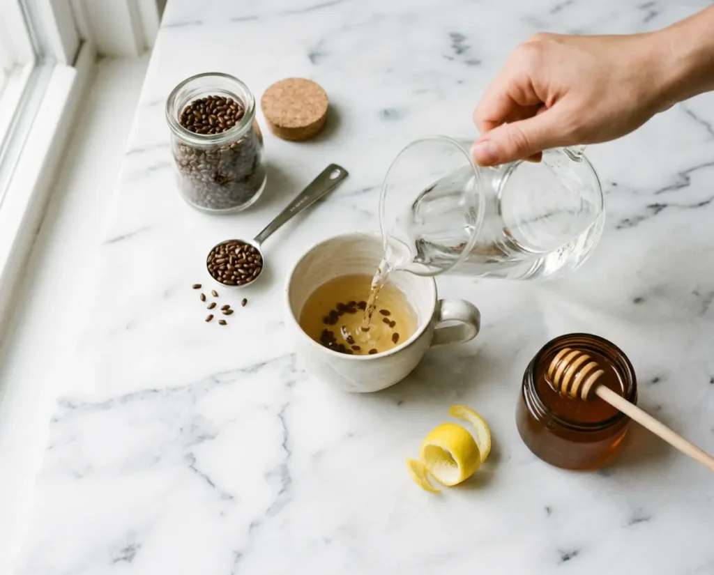 - Despeje a agua quente por cima das sementes e deixe em infusao por 8 a 10 minutos com a xicara tampada para preservar os compostos volateis.