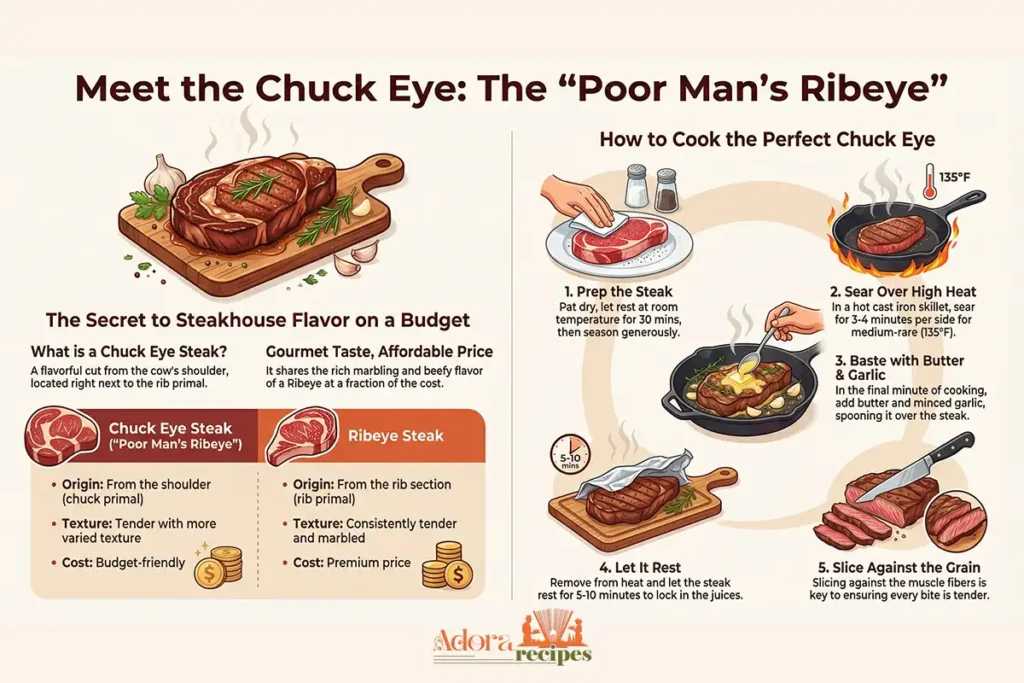 When it comes to enjoying steak, many people immediately think of premium cuts like ribeye or tenderloin. But did you know there’s a budget-friendly option that delivers the same rich, beefy flavor? Meet the chuck eye steak. Known as the “poor man’s ribeye,” this underrated cut offers incredible value without compromising on taste. Whether you’re a seasoned steak lover or just looking for an affordable option for your next dinner, this cut is worth a closer look.