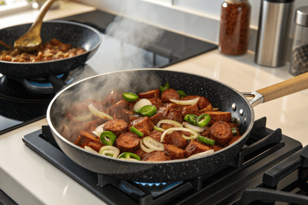 | Cooking on high heat | Chorizo burns before it’s fully cooked | Use medium heat and stir frequently |