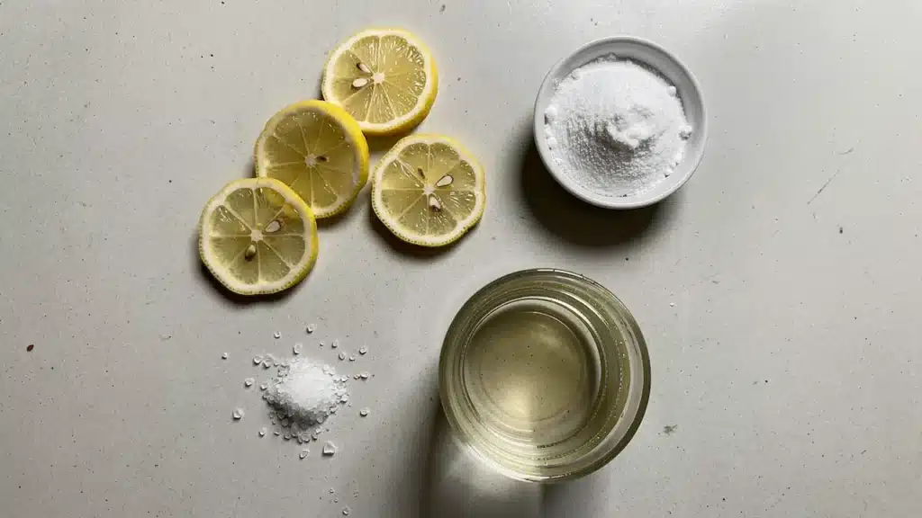 Ingredientes simples usados na receita de gelatina bariátrica para emagrecer, incluindo limão, gelatina sem sabor e água.