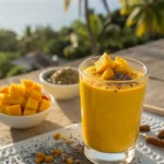 • Green detox smoothie in a mason jar with fresh spinach, banana, lemon, and spirulina powder on a rustic wooden table.Green Detox Smoothie: The Ultimate Spirulina Recipe for a Morning Reset
