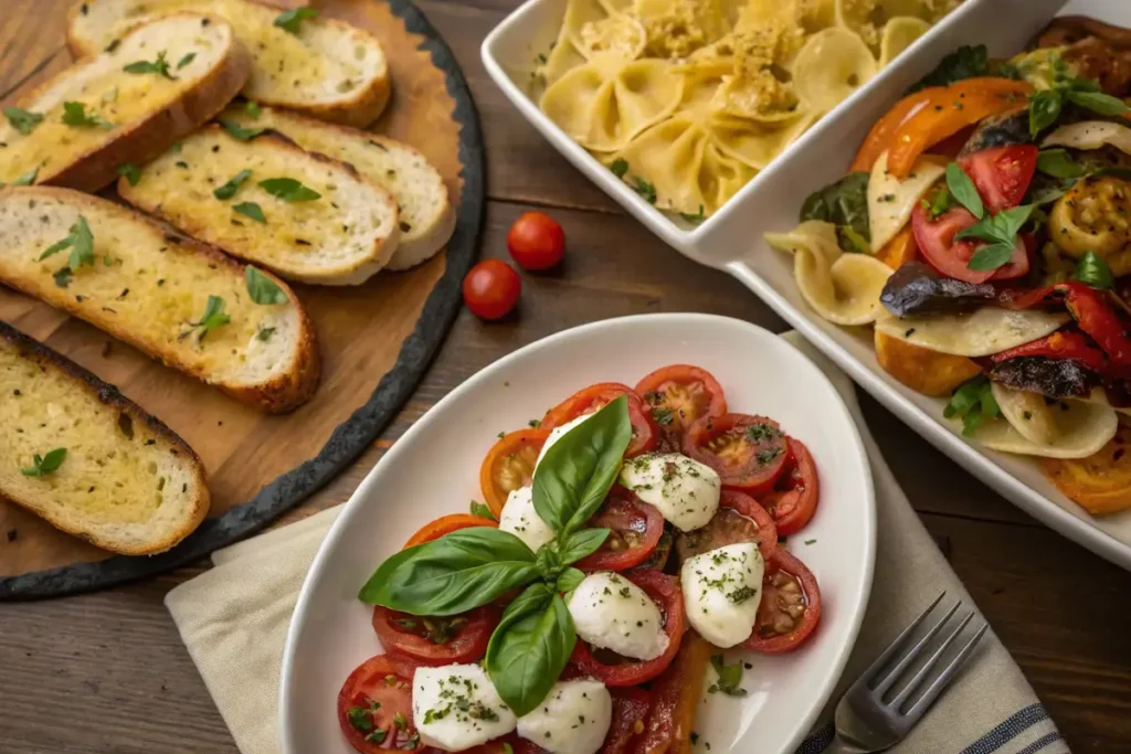 ✔ Classic Italian side dishes, such as garlic bread, Caprese salad, or roasted asparagus, complete the meal.