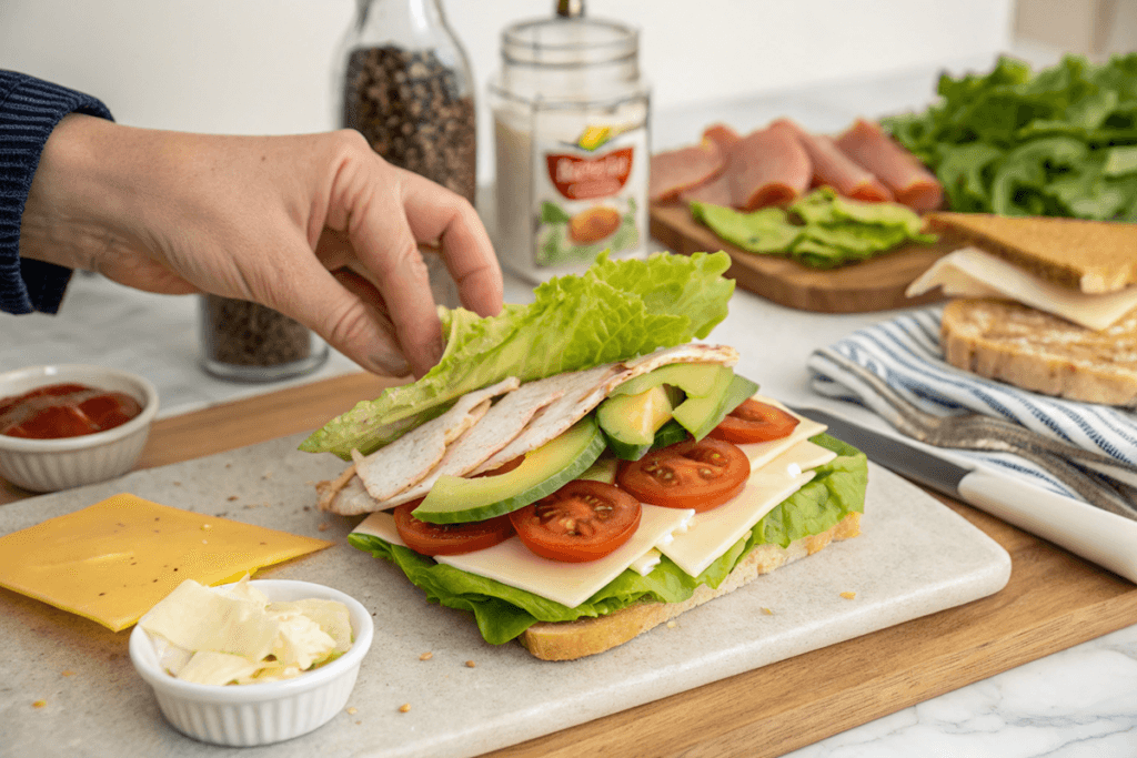 - Classic Deli: Turkey or ham, cheddar cheese, tomato slices, and mayo.
