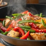 Salmon in a stir fry? Yep. If it’s firm, skinless, and cubed right, it totally works. Just don’t overcook it—salmon’s already high in fat, so too much heat and it’ll get greasy fast.